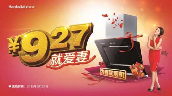 针对此,好太太电器通过各种线上线下结合的推广形式,将品牌的影响度进一步拓展、深化。如不久前拉开帷幕、如今余温依然高涨的“927就爱妻,为妻买烟机”盛大品牌主题活动,打造品牌专属爱妻节,以线下各大终端店与线上天猫官方旗舰店、京东等平台同步同价销售,全方位彰显好太太电器致力于发展新时代女性厨卫事业的品牌文化特色。